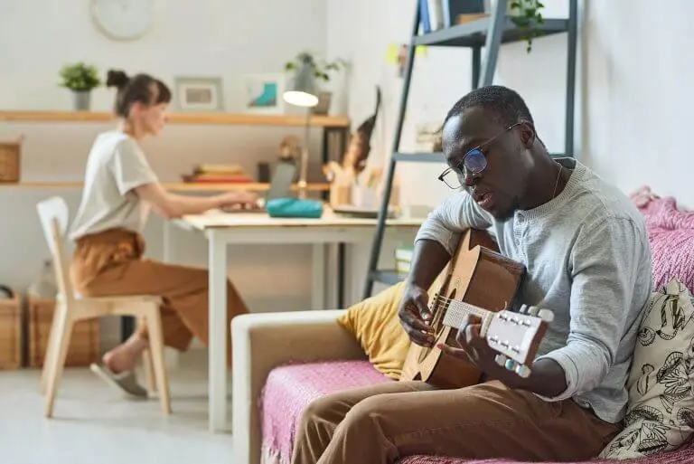 Его атрибуты: Большие наушники (даже если в них ничего не играет); книга или ноутбук; привычка есть йогурт, стоя у окна; свернутое идеально постельное белье, которое он сдает утром.